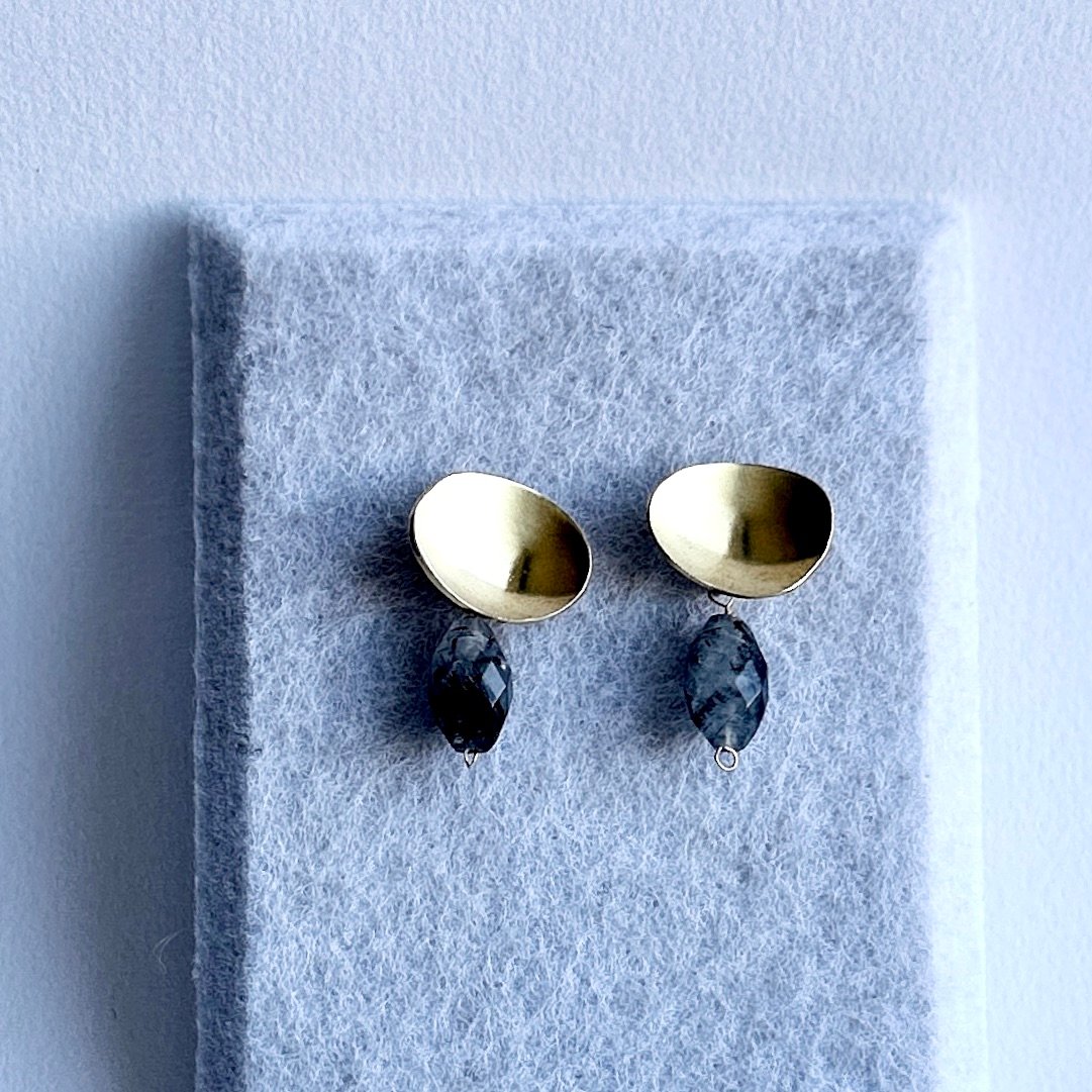 Drop tourmaline earring brass disc stud